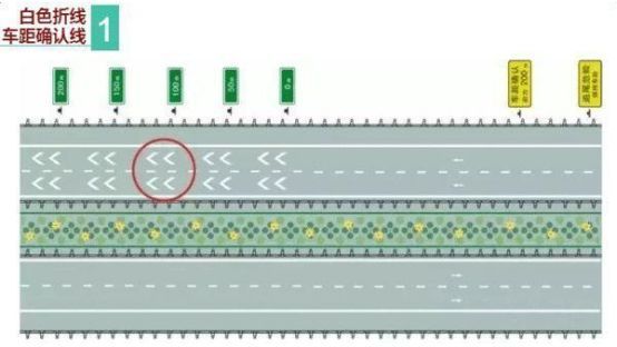 第2種是車距確認(rèn)線——這種標(biāo)線一般出現(xiàn)較易發(fā)生超車、易肇事或其他交通隱患多的路段,它由兩列平行的白色粗實(shí)線組成,提醒車主在高速行車時(shí)保持安全車距,配合50/100/150米這樣的距離確認(rèn)牌,為駕駛員提供輔助參考。